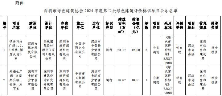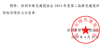 深圳市綠色建筑協(xié)會關(guān)于2024年第二批綠色建筑評價標(biāo)識項目的公示