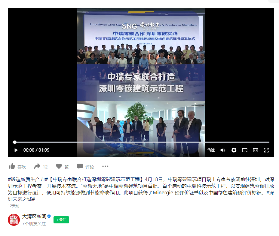 中瑞零碳建筑合作示范工程現(xiàn)場觀摩及技術(shù)交流會的成功舉辦,為高標(biāo)準(zhǔn)建設(shè)“南山能源生態(tài)園零碳天地”注入了新的動力。深圳市綠色建筑協(xié)會將與瑞士綠色建筑協(xié)會繼續(xù)深化合作,加強交流與溝通,為項目的順利落成保駕護航,共同為深圳綠色低碳建筑的高質(zhì)量發(fā)展貢獻新的力量。