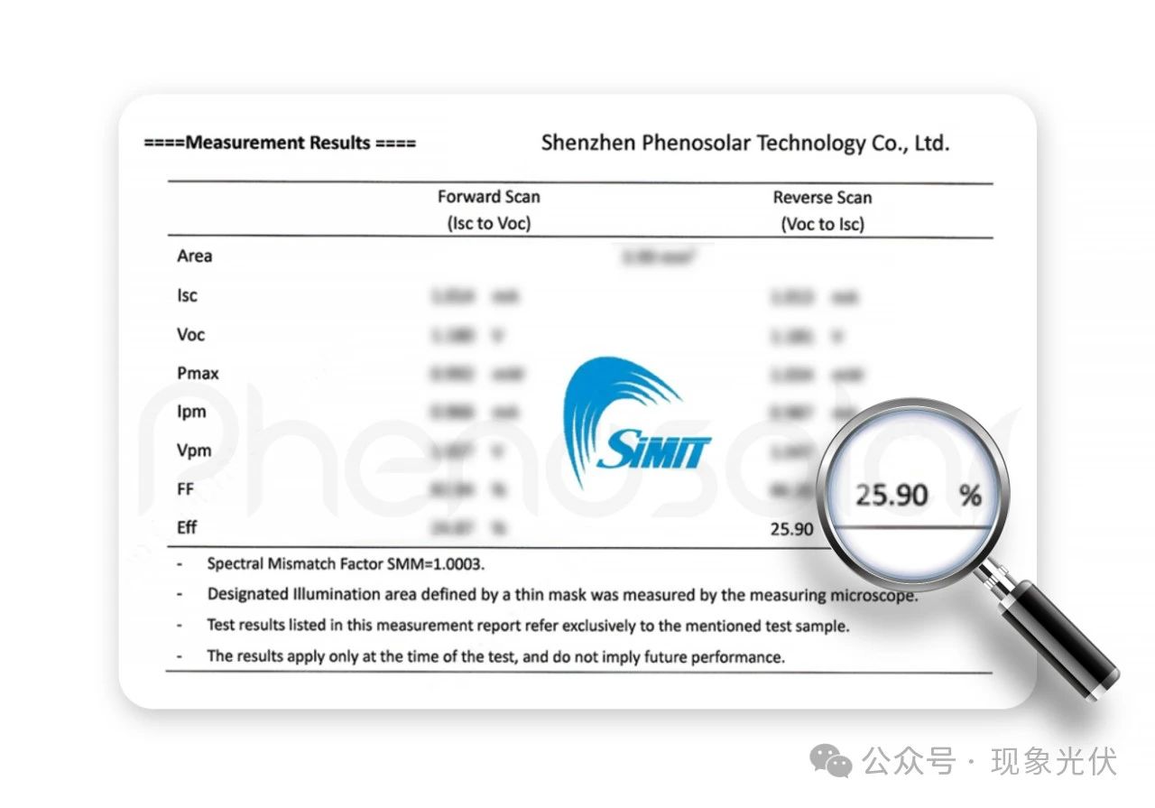 此外,現(xiàn)象光伏鈣鈦礦創(chuàng)新技術(shù)不僅僅局限于去掉P-I-N型鈣鈦礦電池預(yù)置空穴傳輸層,同時(shí)也在N-I-P型鈣鈦礦電池中首次拋棄對(duì)N型金屬氧化物(SnO2、TiO2)電子傳輸層的使用,直接使用自主創(chuàng)制的“Phenosolar#2”鈣鈦礦前驅(qū)體溶液在TCO導(dǎo)電玻璃上沉積調(diào)控,通過(guò)類(lèi)似的工藝處理方式最終獲得了與使用SnO2類(lèi)金屬氧化物電子傳輸層相當(dāng)?shù)墓怆娹D(zhuǎn)換效率。經(jīng)過(guò)不斷論證與測(cè)試發(fā)現(xiàn),采用此溶液調(diào)制配方制備單節(jié)鈣鈦礦光伏組件有著巨大優(yōu)勢(shì),同時(shí)也可應(yīng)用于鈣鈦礦/晶硅兩端疊層電池的制備,其獨(dú)特的保型沉積、接觸復(fù)合改善功能使得兩端疊層電池光電轉(zhuǎn)換效率穩(wěn)定在30%以上。