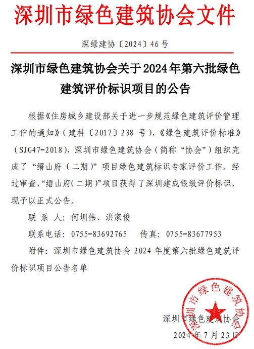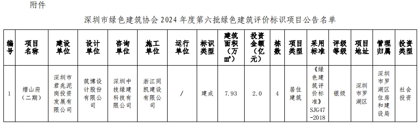 深圳市綠色建筑協(xié)會關(guān)于2024年第六批綠色建筑評價標(biāo)識項目的公告