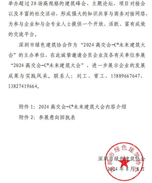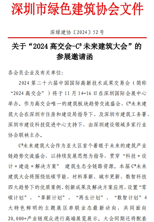 關(guān)于“2024 高交會(huì)-C3未來(lái)建筑大會(huì)”的參展邀請(qǐng)函