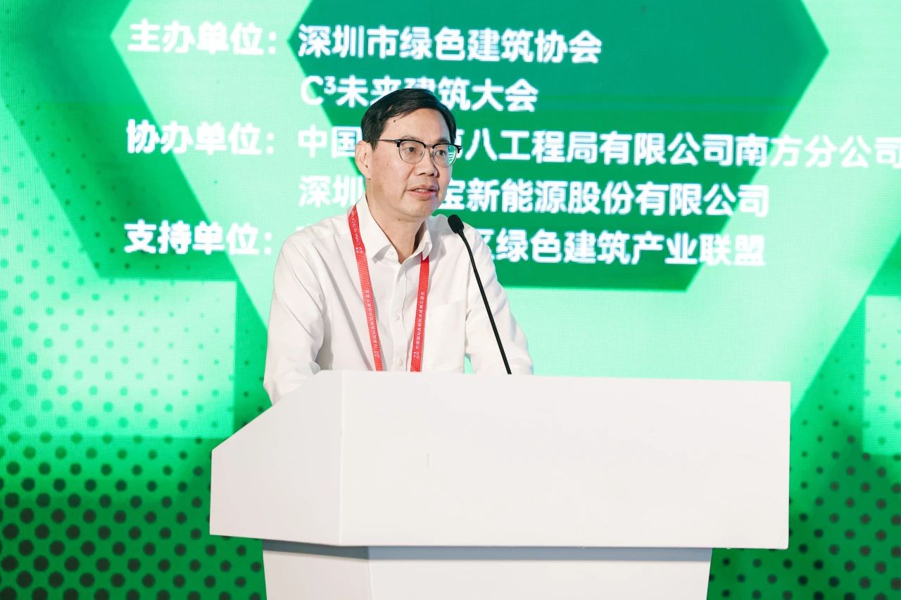 論壇由深圳市綠色建筑協(xié)會秘書長王向昱主持,粵港澳大灣區(qū)綠色建筑產(chǎn)業(yè)聯(lián)盟主席、廣東省建筑節(jié)能與綠色低碳協(xié)會會長、廣東省住房和城鄉(xiāng)建設(shè)廳原二級巡視員廖江陵,深圳市住房和建設(shè)局勘察設(shè)計與建設(shè)科技處調(diào)研員方軍,深圳市綠色建筑協(xié)會會長、深圳市科源建設(shè)集團(tuán)股份有限公司董事、常務(wù)副總裁剪愛森等領(lǐng)導(dǎo)嘉賓到會致辭。