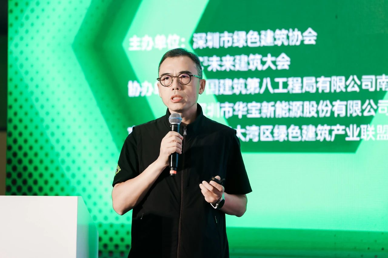 華南理工大學(xué)教授趙立華基于《近零能耗建筑技術(shù)標(biāo)準(zhǔn)》(GB/T 51350-2019)的相關(guān)規(guī)定和要求,介紹了夏熱冬暖地區(qū)近零能耗建筑技術(shù)路徑,分享廣東省的近零能耗與零能耗工程案例的主要技術(shù)和經(jīng)驗。深圳市綠色建筑協(xié)會副會長、深圳萬都時代綠色建筑技術(shù)有限公司董事長蘇志剛結(jié)合在綠色建筑領(lǐng)域的探索及實踐經(jīng)驗,提出“綠色金字塔”體系模型,將綠色建筑全生命周期發(fā)展路徑及其9個階段的價值完整呈現(xiàn)。深圳市特區(qū)建工科工集團(tuán)總工程師顧磊通過兩類不同業(yè)態(tài)的裝配式建筑實踐,探索了裝配式建筑在綠色節(jié)能降碳領(lǐng)域的積極應(yīng)用。中國建筑標(biāo)準(zhǔn)設(shè)計研究院技術(shù)發(fā)展中心主任徐愷介紹了綠色建材的發(fā)展背景、現(xiàn)狀,并提出搭建世界范圍內(nèi)的建筑綠色供應(yīng)鏈條的發(fā)展思路。深圳市華寶新能源股份有限公司光伏產(chǎn)品研發(fā)總監(jiān)于華君在演講中表示,在國家大力發(fā)展可再生能源的背景下,該公司研發(fā)的創(chuàng)新產(chǎn)品致力于實現(xiàn)光伏技術(shù)與屋頂美學(xué)的深度融合。