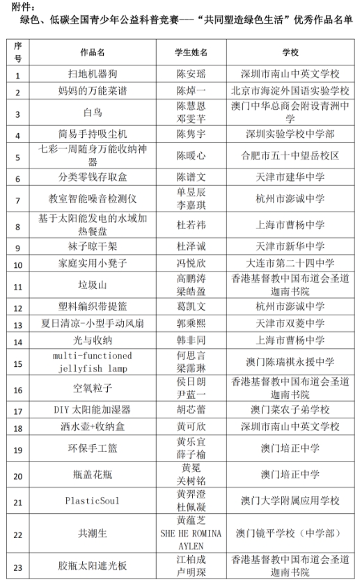 在綠色發(fā)展的時(shí)代浪潮下,以“共同塑造綠色生活”為主題, 綠色、低碳全國(guó)青少年公益科普競(jìng)賽成功舉辦,來(lái)自全國(guó)各地的初、高中學(xué)生們積極響應(yīng),用青春的熱情和智慧為綠色、低碳事業(yè)添磚加瓦。他們不僅身體力行,在公共場(chǎng)所拾起塑料廢棄物,還發(fā)揮奇思妙想,將家中閑置塑料制品 “變廢為寶”。經(jīng)過(guò)篩選和推薦,100件佳作脫穎而出,它們承載著青少年們對(duì)綠色生活的美好憧憬。