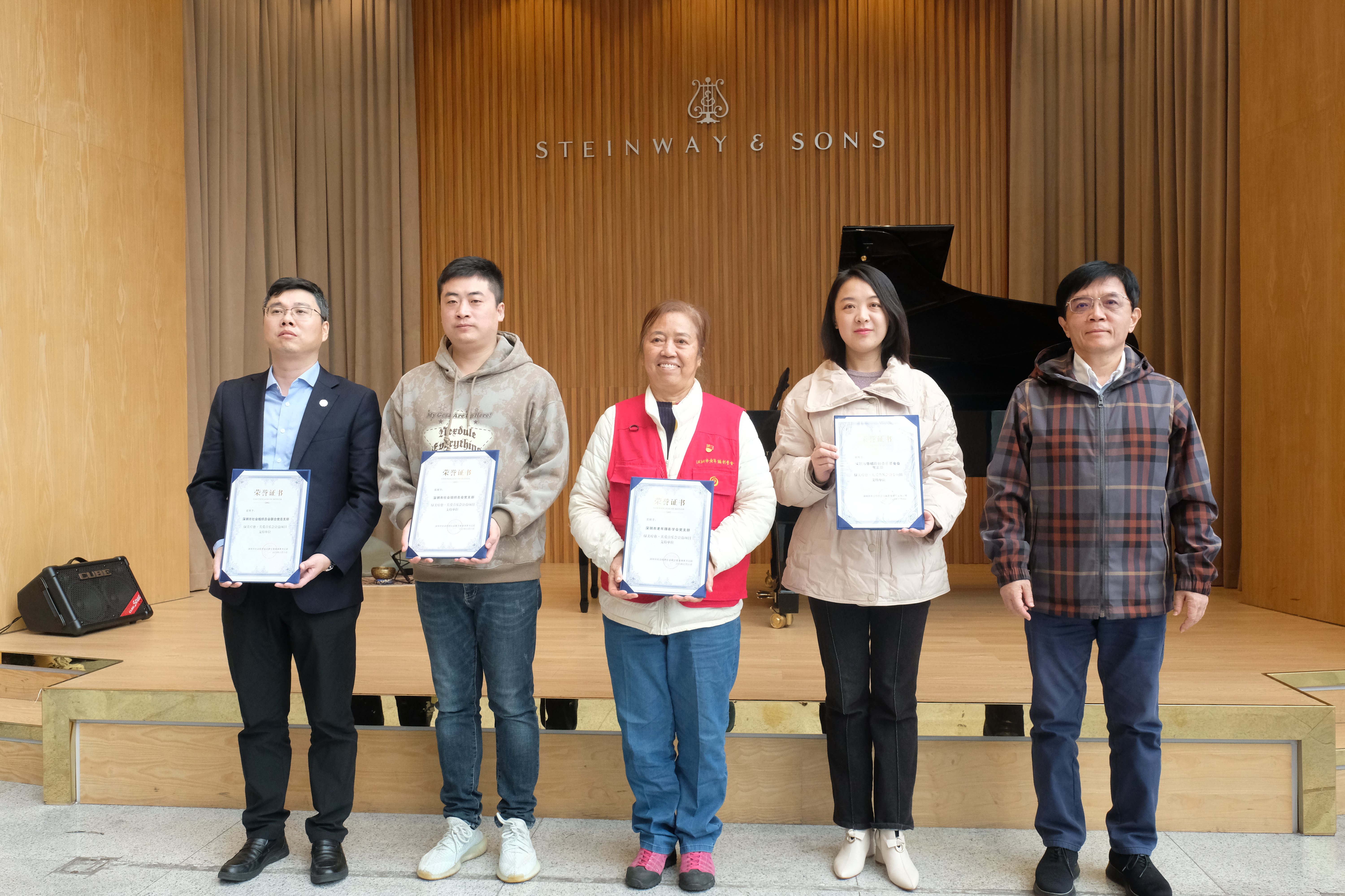 活動(dòng)最后,舉辦深圳市社會(huì)組織總會(huì)聯(lián)合黨委“綠美書(shū)記團(tuán)”授榮儀式,分別授予主辦、承辦、合作、支持機(jī)構(gòu)“綠美療愈.關(guān)愛(ài)音樂(lè)會(huì)公益項(xiàng)目聯(lián)合公益發(fā)起單位”榮譽(yù)證書(shū)。綠美書(shū)記團(tuán)團(tuán)長(zhǎng)、深圳市綠色建筑協(xié)會(huì)黨支部書(shū)記、秘書(shū)長(zhǎng)王向昱作為主辦單位代表參加儀式。