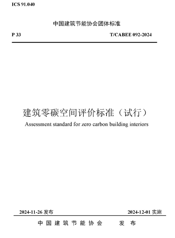 日前,中國建筑節(jié)能協(xié)會(huì)印發(fā)通知,批準(zhǔn)《建筑零碳空間評(píng)價(jià)標(biāo)準(zhǔn)(試行)》為中國建筑節(jié)能協(xié)會(huì)團(tuán)體標(biāo)準(zhǔn),標(biāo)準(zhǔn)編號(hào)為:T/CABEE 092-2024,自2024年12月1日起實(shí)施。