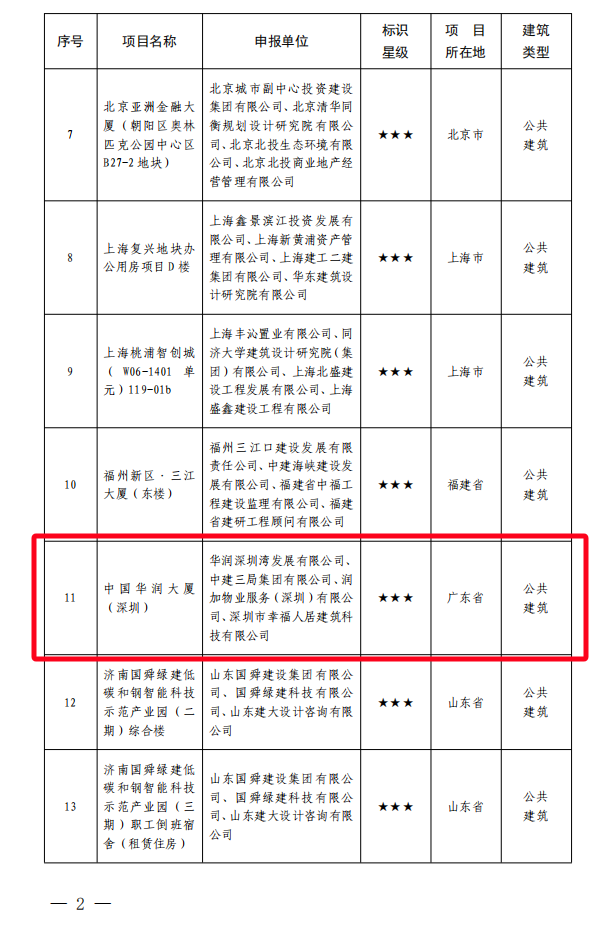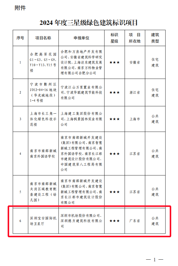 日前,住房和城鄉(xiāng)建設(shè)部發(fā)布《關(guān)于2024年度三星級綠色建筑標識項目的公告》(簡稱“公告”)。公告指出,經(jīng)項目單位申報、省級住房城鄉(xiāng)建設(shè)部門推薦、住房城鄉(xiāng)建設(shè)部組織專家審查并向社會公示,確定合肥高第花園G1~G3、G5~G9、Y10~Y13、Y15號樓項目等17個項目獲得三星級綠色建筑標識。其中,“深圳寶安國際機場衛(wèi)星廳”“中國華潤大廈(深圳)”等兩個深圳項目位列其中。