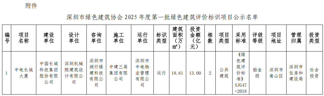 深圳市綠色建筑協(xié)會(huì)關(guān)于2025年第一批綠色建筑評(píng)價(jià)標(biāo)識(shí)項(xiàng)目的公示