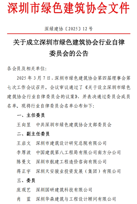 關(guān)于成立深圳市綠色建筑協(xié)會(huì)行業(yè)自律委員會(huì)的公告