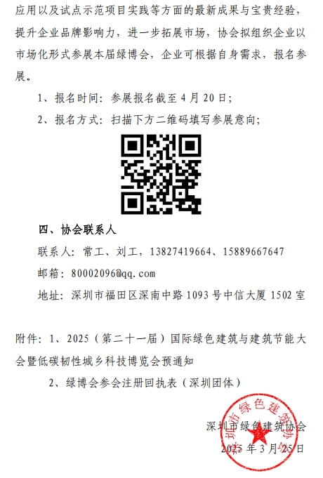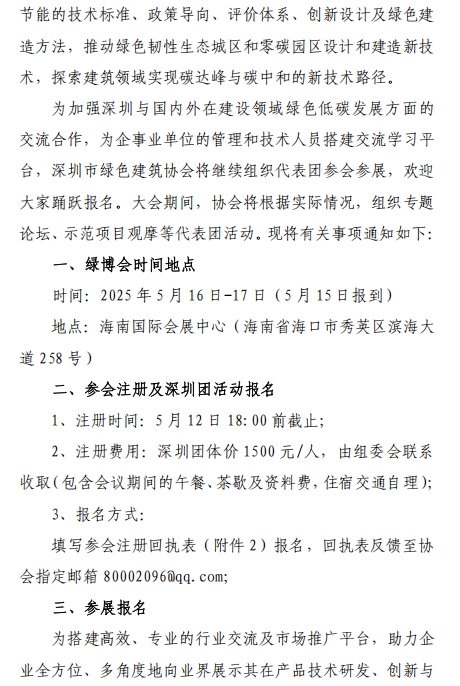 深圳市綠色建筑協(xié)會關(guān)于組團參加“2025(第二十一屆)國際綠色建筑與建筑節(jié)能大會暨低碳韌性城鄉(xiāng)科技博覽會”的邀請函