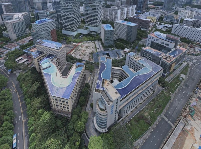 講座后,參會人員現(xiàn)場觀摩了“虛擬大學園區(qū)第六立面改造與能源提升項目”。項目由深圳市深匯通能源科技發(fā)展有限公司投資建設,旨在通過創(chuàng)新技術與設計,對城市建筑屋頂?shù)任幢怀浞掷玫目臻g進行改造與提升,打造集綠色生態(tài)、休閑娛樂、能源利用于一體的多功能復合空間,實施范圍共包含深圳清華大學研究院、中國地質(zhì)大學產(chǎn)學研基地等18棟建筑。項目按照投資+設計+施工+運營管理的實施模式推動開展,統(tǒng)籌考慮功能性、美觀性和經(jīng)濟性,在提升建筑第六立面的同時,同步考慮光伏設施的發(fā)電功能、樓宇能源管理和項目整體投資的經(jīng)濟可持續(xù)性。