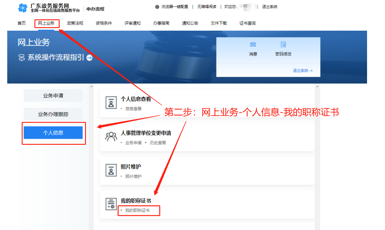 3、跳轉(zhuǎn)到粵省事+ 然后專業(yè)技術(shù)資格證書