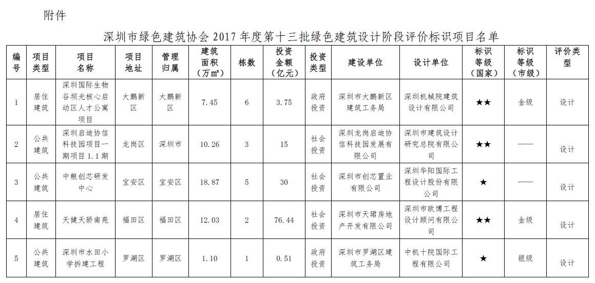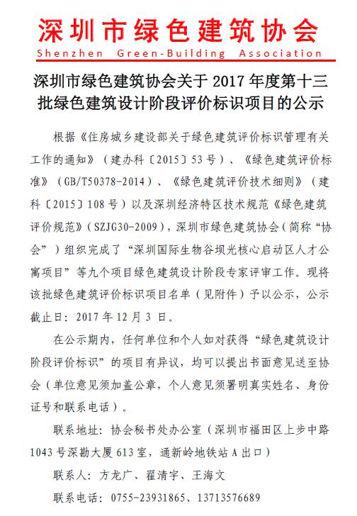 關(guān)于2017年度第十三批綠色建筑設(shè)計(jì)階段評(píng)價(jià)標(biāo)識(shí)項(xiàng)目的公示