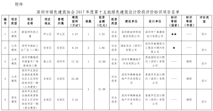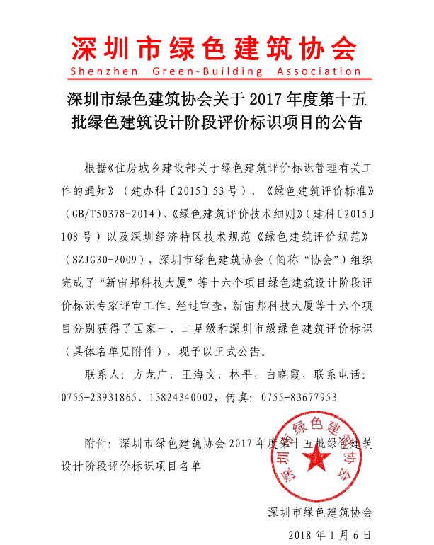 關(guān)于2017年度第十五批綠色建筑設(shè)計(jì)階段評(píng)價(jià)標(biāo)識(shí)項(xiàng)目的公告