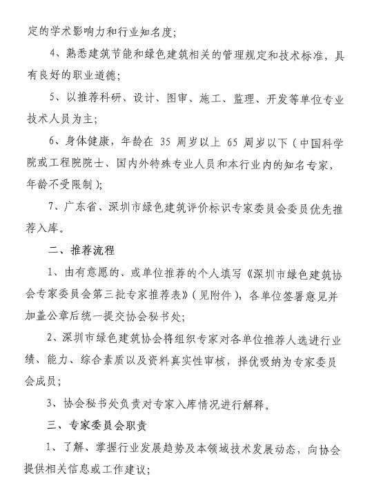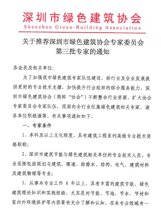 關(guān)于推薦深圳市綠色建筑協(xié)會專家委員會第三批專家的通知