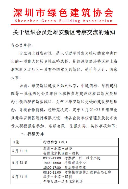 關(guān)于組織會(huì)員赴雄安新區(qū)考察交流的通知