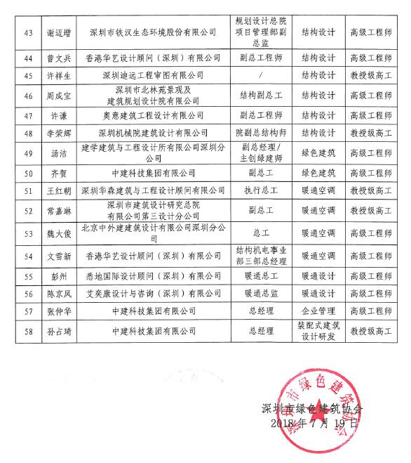 “深圳市綠色建筑協(xié)會專家委員會”第三批入選專家名單公示