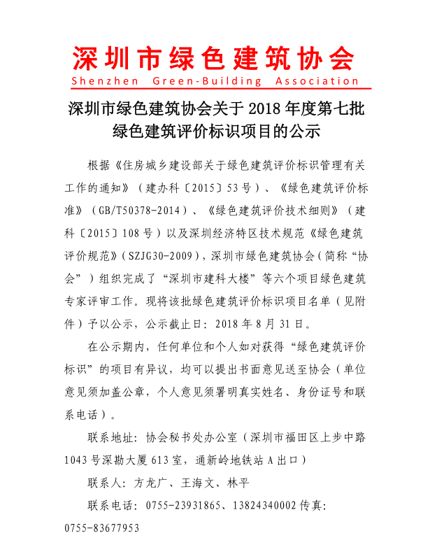 關(guān)于2018年度第七批綠色建筑評(píng)價(jià)標(biāo)識(shí)項(xiàng)目的公示