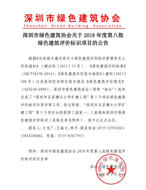 關于2018年度第八批綠色建筑評價標識項目的公告
