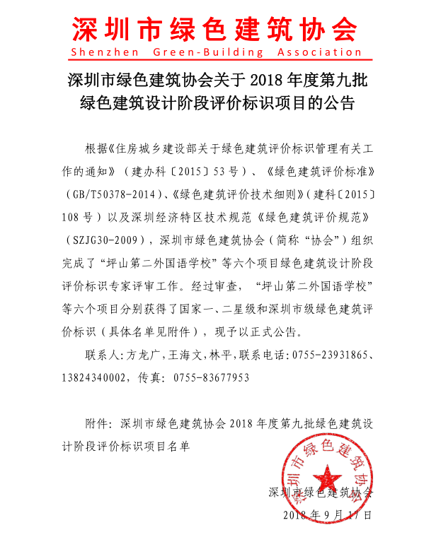 關于2018年度第九批綠色建筑評價標識項目的公告