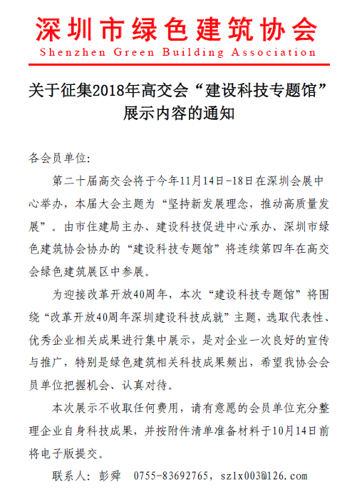關(guān)于征集2018年高交會“建設(shè)科技專題館”展示內(nèi)容的通知