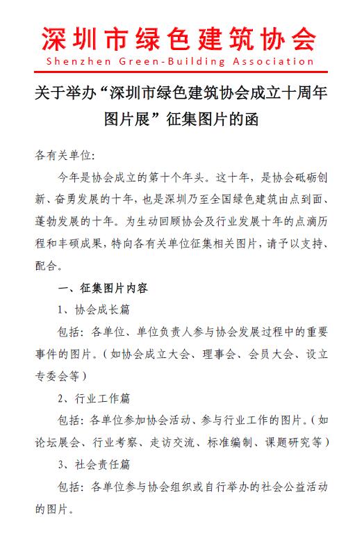 關(guān)于舉辦“深圳市綠色建筑協(xié)會成立十周年圖片展”征集圖片的函