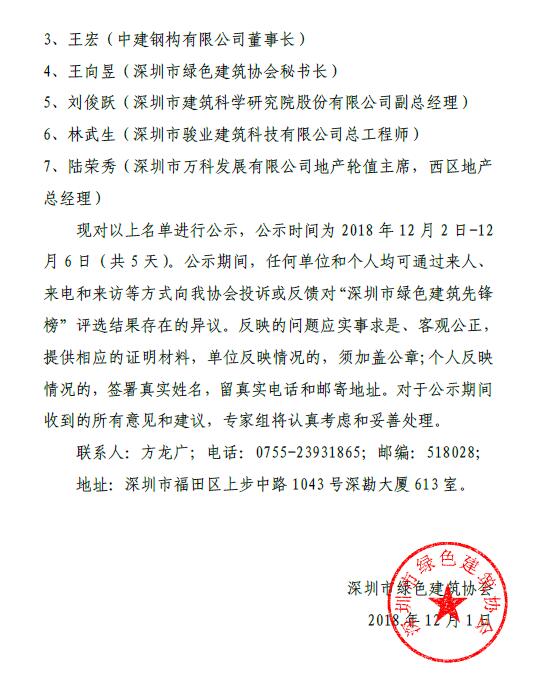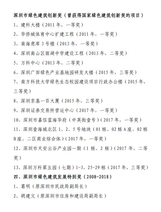 深圳市綠色建筑先鋒榜(2008-2018)公示