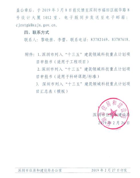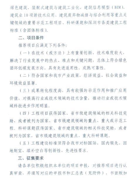 轉發(fā)深圳市住房和建設局關于征集列入深圳市“十三五”建筑領域科技重點計劃項目的通知(深建科工〔2019〕13號)