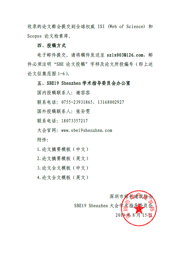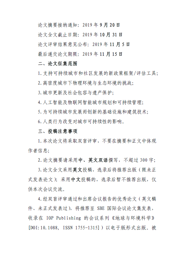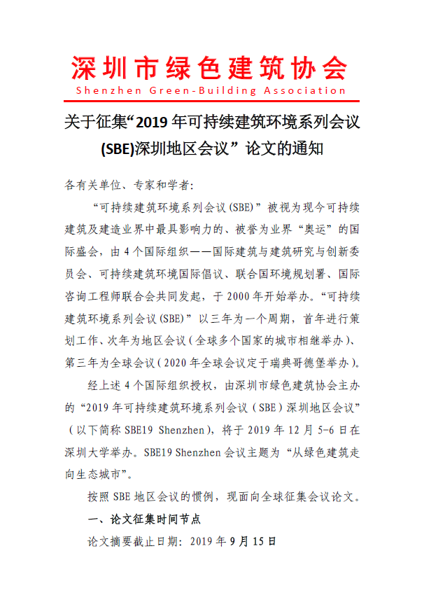 關(guān)于征集“2019年可持續(xù)建筑環(huán)境系列會(huì)議(SBE)深圳地區(qū)會(huì)議”論文的通知(調(diào)整)