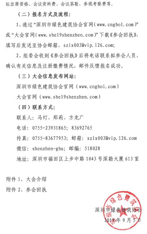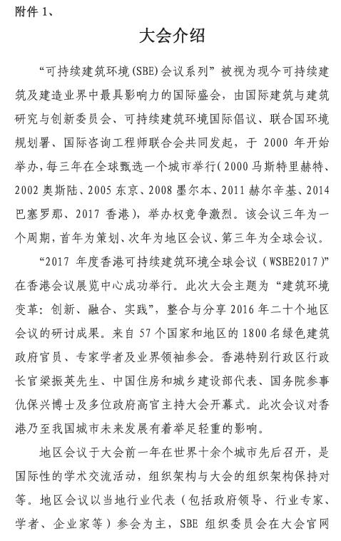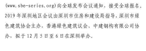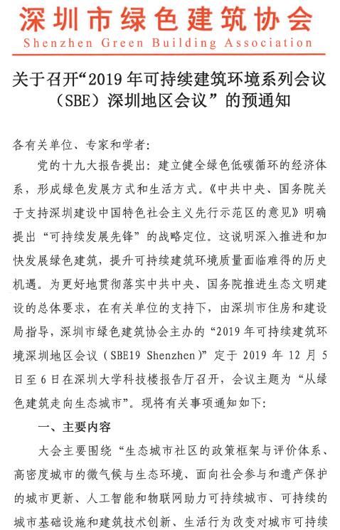 關(guān)于召開“2019年可持續(xù)建筑環(huán)境系列會議(SBE)深圳地區(qū)會議”的預(yù)通知