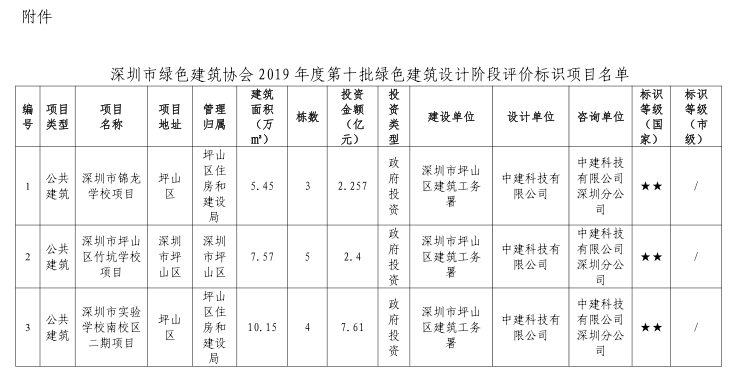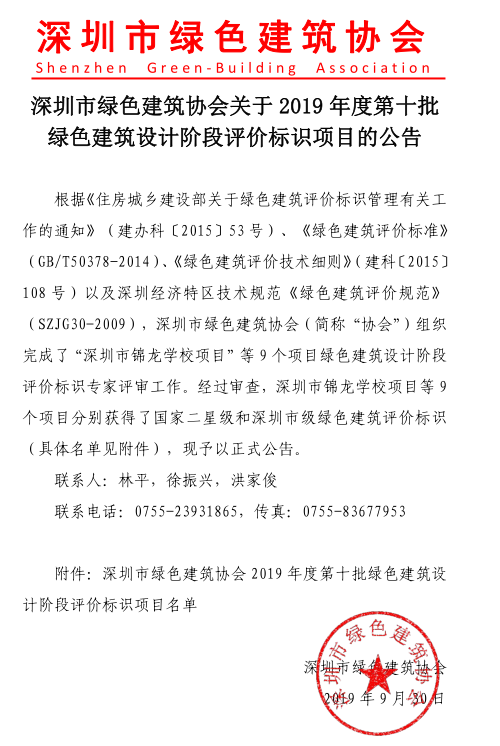 深圳市綠色建筑協(xié)會關(guān)于2019年度第十批綠色建筑評價標(biāo)識項(xiàng)目的公告