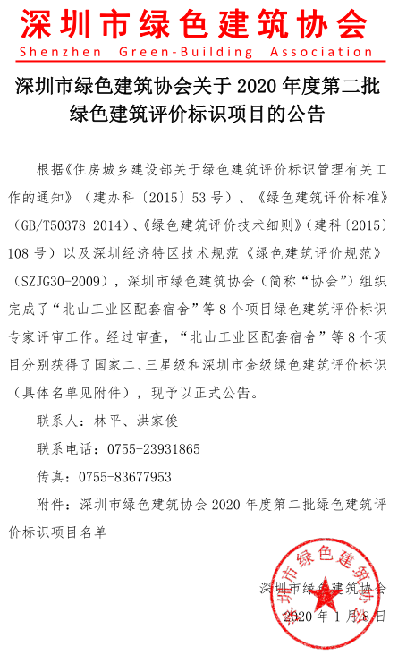 深圳市綠色建筑協(xié)會關(guān)于2020年度第二批綠色建筑評價標識項目的公告