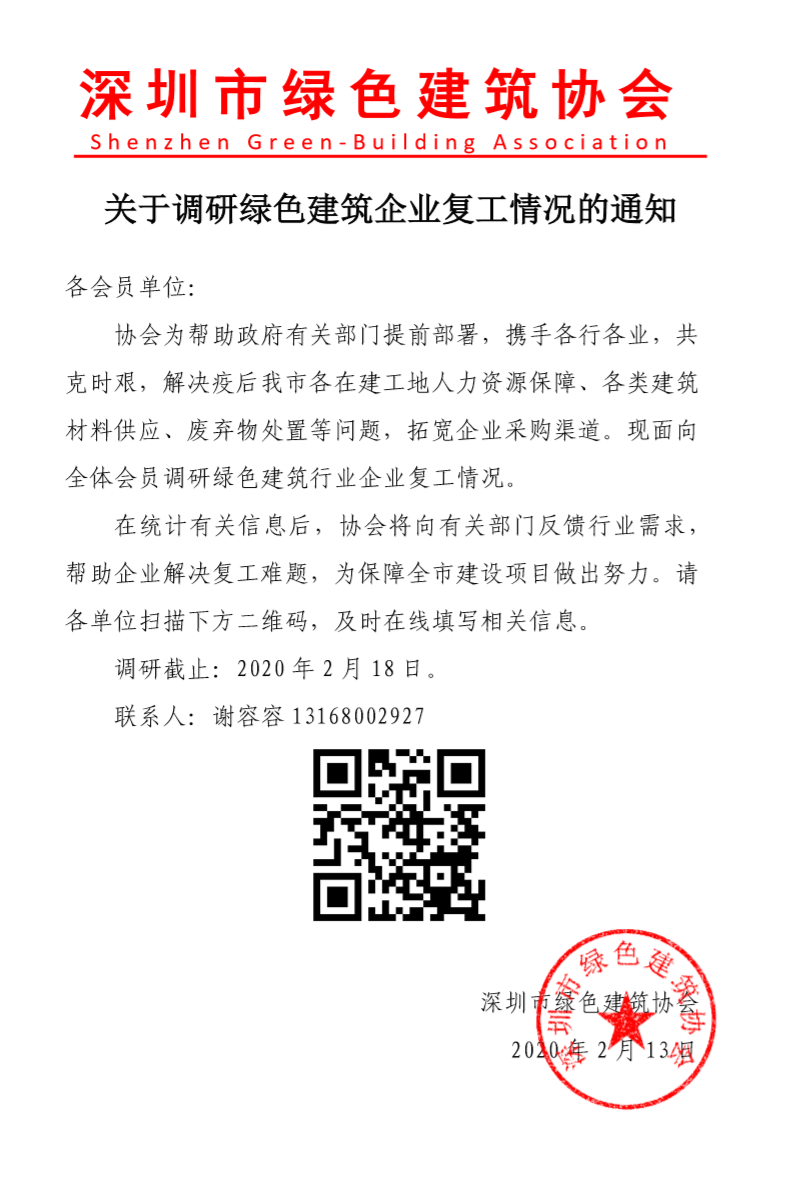 關(guān)于調(diào)研綠色建筑企業(yè)復(fù)工情況的通知