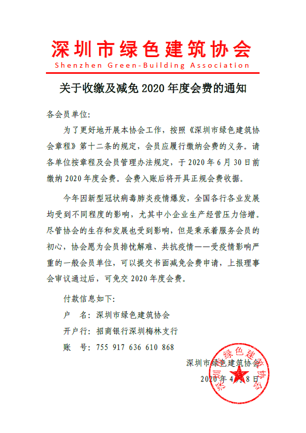 關(guān)于收繳及減免2020年度會(huì)費(fèi)的通知