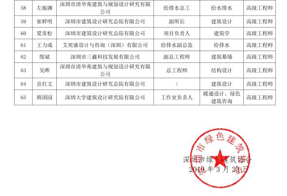 “深圳市綠色建筑協(xié)會專家委員會”第四批入選專家名單公示