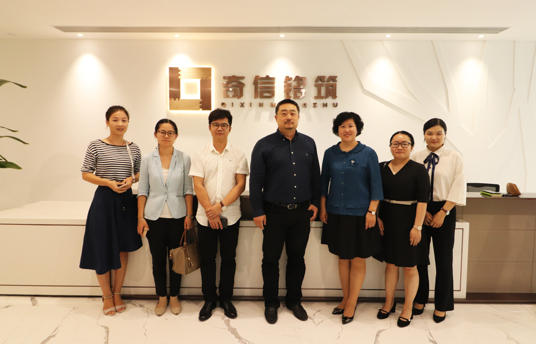 4月18日,奇信銘筑董事長(zhǎng)王世丹(中)接待王向昱秘書長(zhǎng)(右三)一行