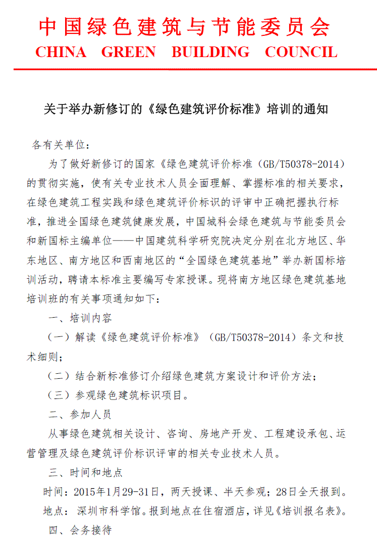 關(guān)于舉辦新修訂的《綠色建筑評價標(biāo)準(zhǔn)》培訓(xùn)的通知
