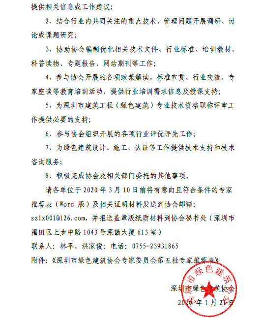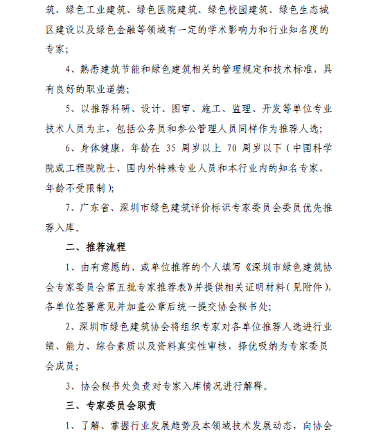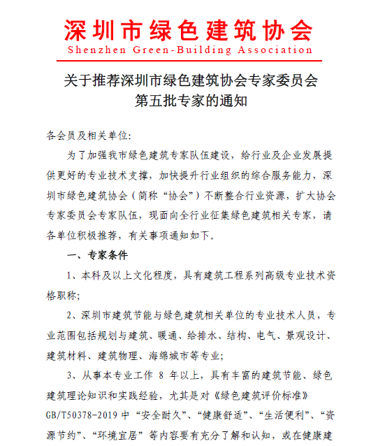 關(guān)于推薦深圳市綠色建筑協(xié)會專家委員會第五批專家的通知