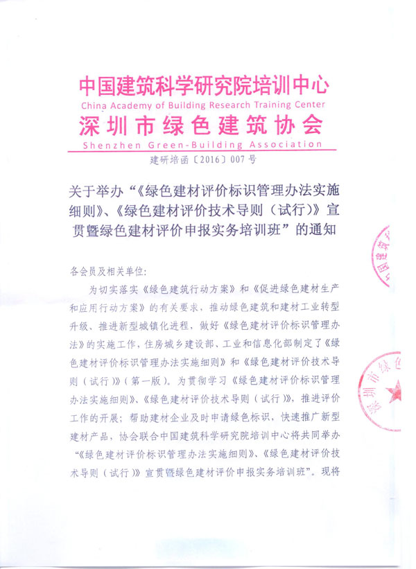 《綠色建材評價標(biāo)識管理辦法實施細(xì)則》《綠色建材評價技術(shù)導(dǎo)則(試行)》宣貫暨綠色建材評價申報實務(wù)培訓(xùn)。