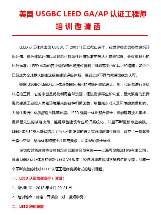 美國 USGBC LEED GA AP認證工程師培訓通知