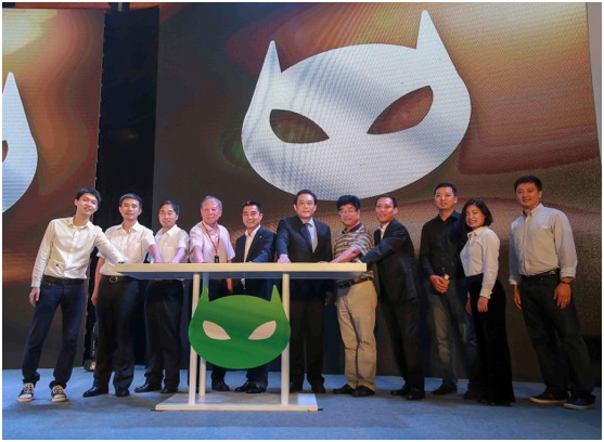 圖 1廣田集團(tuán)董事長葉遠(yuǎn)西、廣田股份董事長范志全與嘉賓一齊宣布圖靈貓發(fā)布會正式開始。