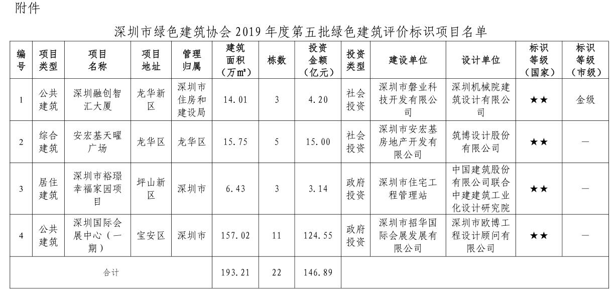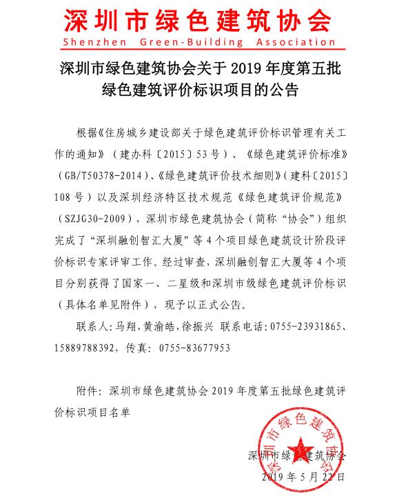 深圳市綠色建筑協(xié)會關(guān)于2019年度第五批綠色建筑評價標(biāo)識項(xiàng)目的公告
