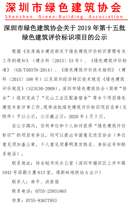 深圳市綠色建筑協(xié)會(huì)關(guān)于2019年度第十五批綠色建筑設(shè)計(jì)階段評(píng)價(jià)標(biāo)識(shí)項(xiàng)目的公示