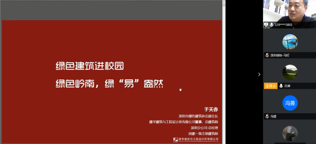 5月11日下午,由深圳市綠色建筑協(xié)會主辦、深圳大學(xué)建筑與城市規(guī)劃學(xué)院協(xié)辦的“綠色建筑進(jìn)校園——綠色嶺南,綠‘易’盎然”線上講座成功舉辦。此次講座由深圳市綠色建筑協(xié)會副會長、建學(xué)建筑與工程設(shè)計所有限公司董事、總建筑師、深圳分公司總經(jīng)理于天赤主講,來自深圳大學(xué)的青年學(xué)生及有關(guān)行業(yè)技術(shù)人員共180余人參加。