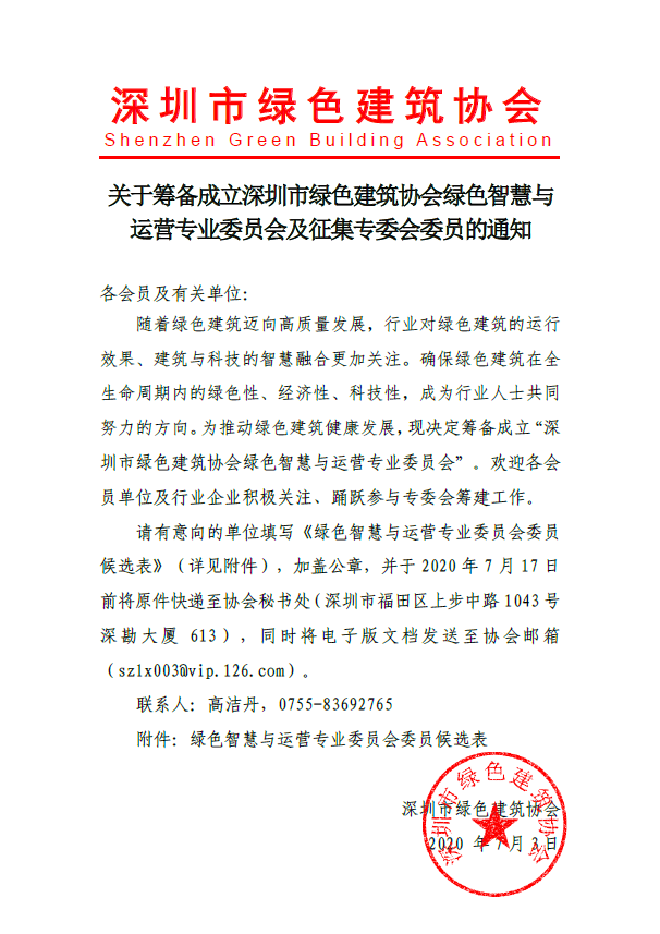 關(guān)于征集綠色智慧與運(yùn)營專業(yè)委員會委員的通知
