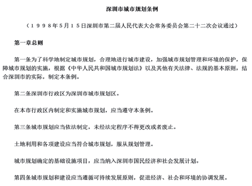 1998 年,深圳頒布《深圳市城市規(guī)劃條例》