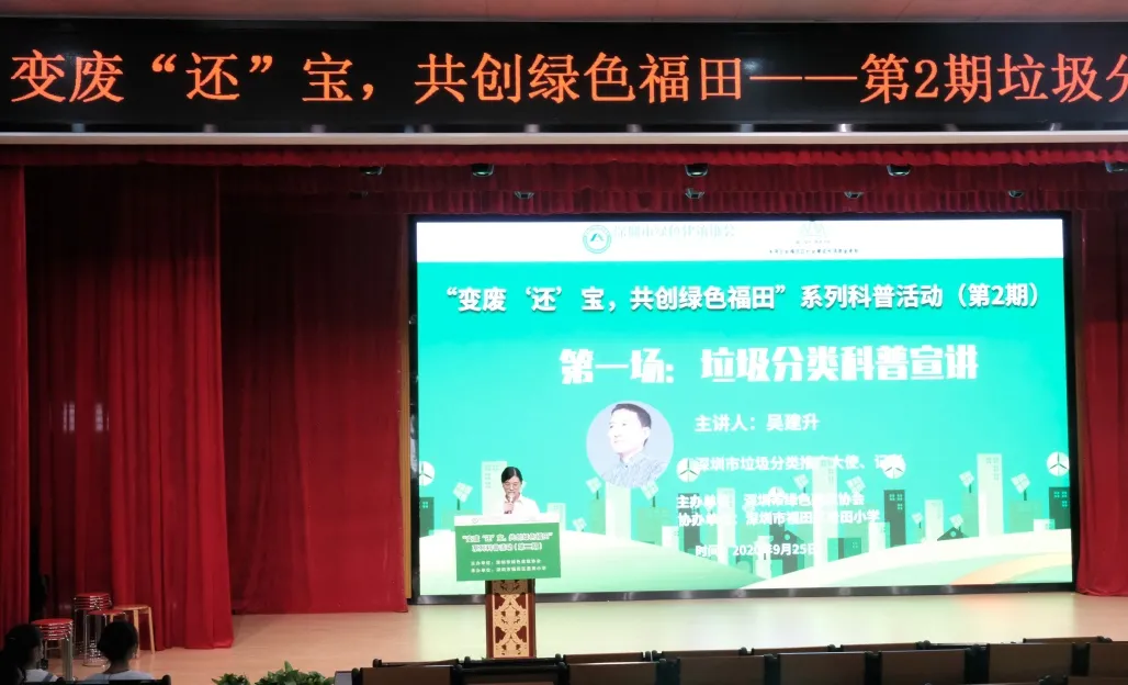 為貫徹落實《深圳經(jīng)濟(jì)特區(qū)科學(xué)技術(shù)普及條例》,宣傳綠色節(jié)能理念,在福田區(qū)社會建設(shè)專項資金的資助下,由深圳市綠色建筑協(xié)會主辦、福田區(qū)景田小學(xué)協(xié)辦的“變廢‘還’寶,共創(chuàng)綠色福田”第2期系列科普活動于9月25日在景田小學(xué)開展。本次活動圍繞綠色建筑與建筑節(jié)能、垃圾分類等內(nèi)容進(jìn)行了科普宣講,配套組織了科普知識競賽,景田小學(xué)1400余名師生參加活動。