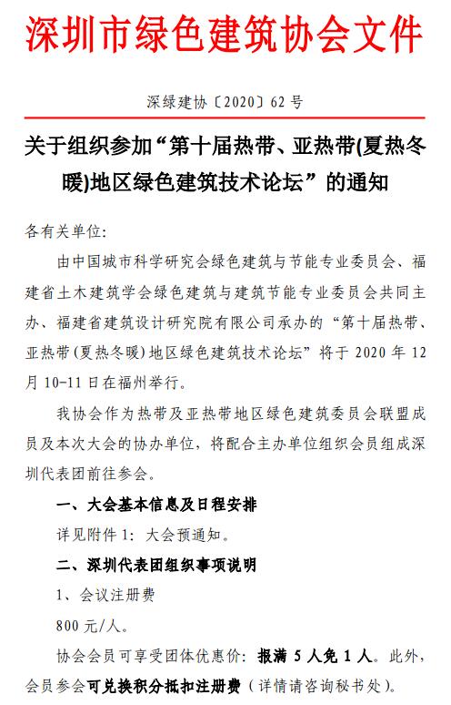 2020第十屆熱帶、亞熱帶地區(qū)綠色建筑技術(shù)論壇(深圳組團(tuán)通知)