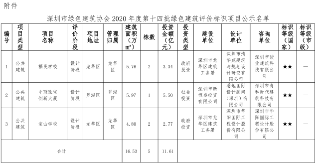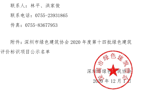 深圳市綠色建筑協(xié)會(huì)關(guān)于2020年度第十四批綠色建筑評(píng)價(jià)標(biāo)識(shí)項(xiàng)目的公示