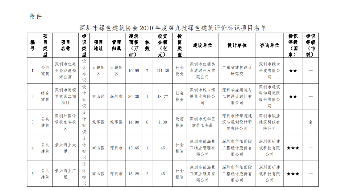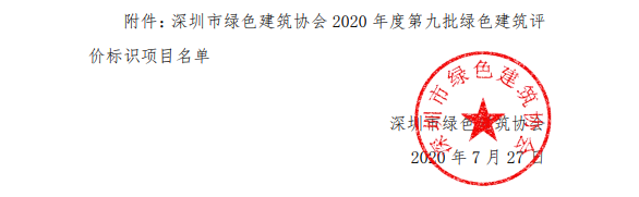 深圳市綠色建筑協(xié)會關于2020年度第九批綠色建筑設計階段評價標識項目的公示